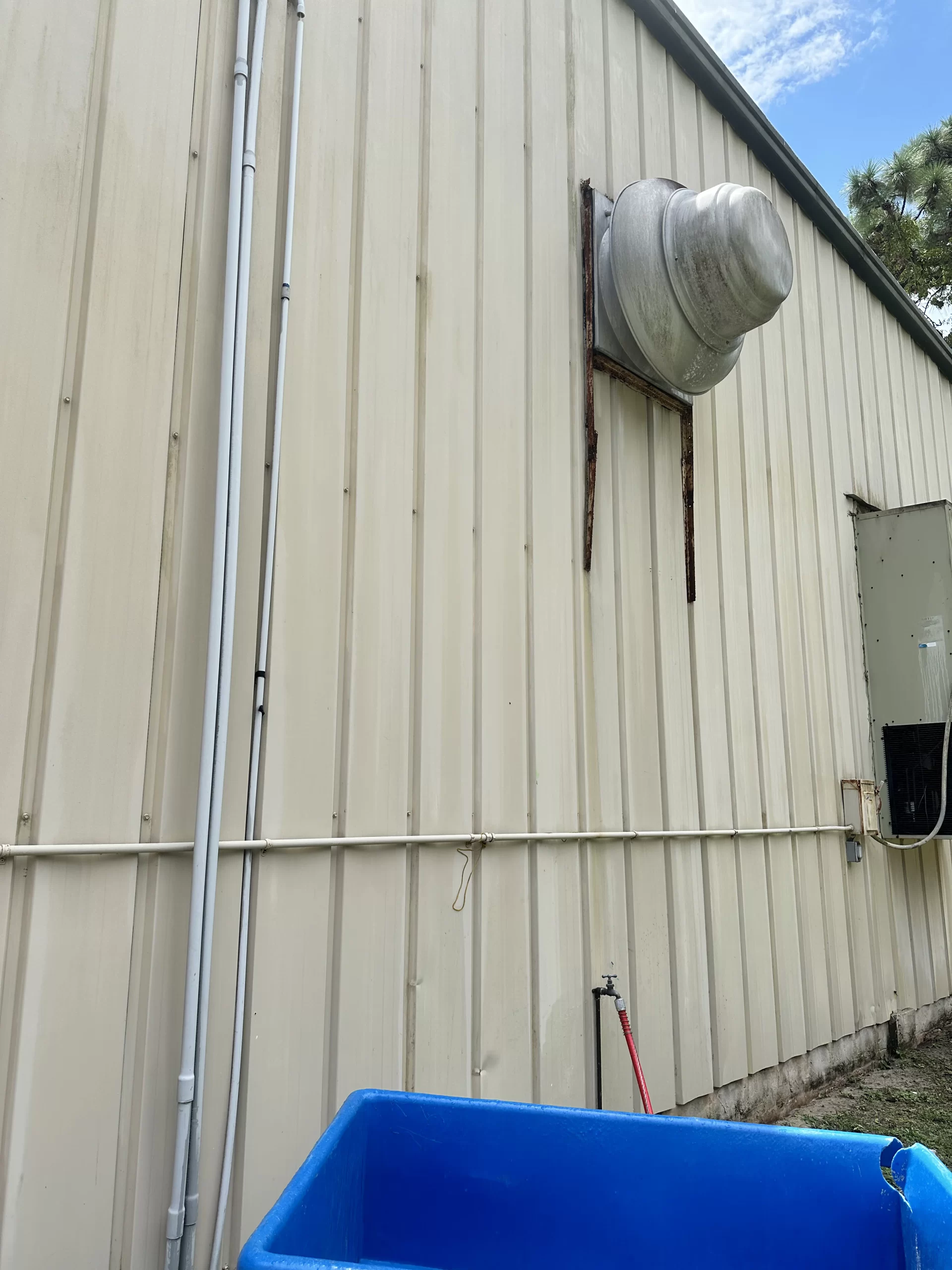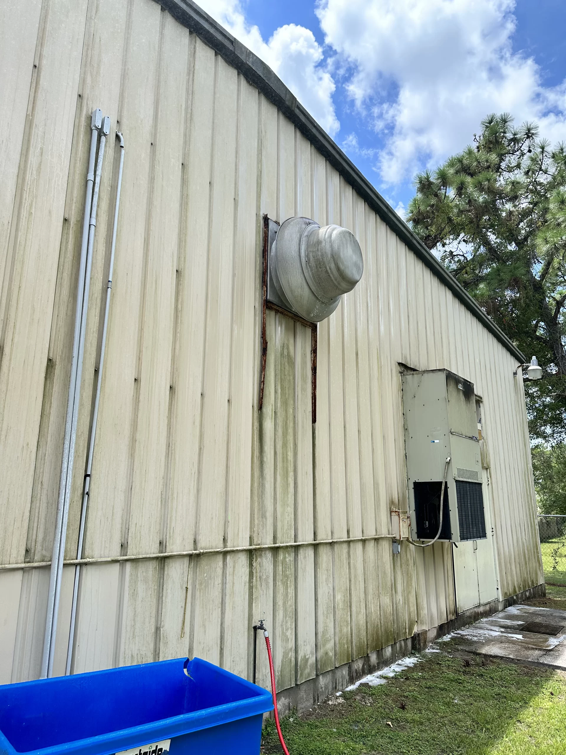 Pressure washing in Jacksonville, FL cleaning a commercial building exterior wall
