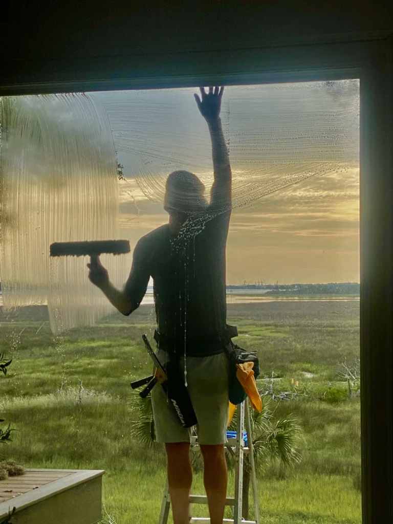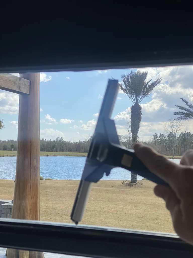 Jacksonville’s climate brings humidity, pollen, and salt air that quickly build up on glass surfaces. Over time, this residue can leave streaks, hard water stains, and damage that dulls your windows’ clarity.